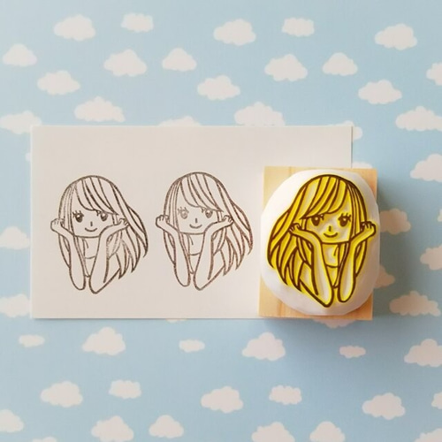 消しゴムはんこ。女子はんこ 少女漫画 好きが作る女の子ハンコ「爽やか女子」消しゴムはんこ