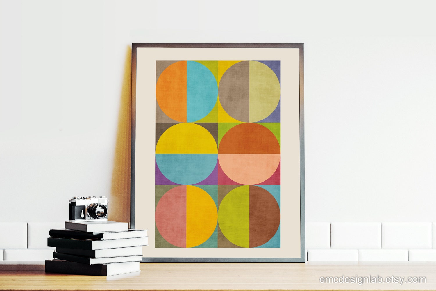 ビンテージ MODERN GEOMETORIC ART PRINT Colorful Mid-century Modern Geometric Wall Art, Circles